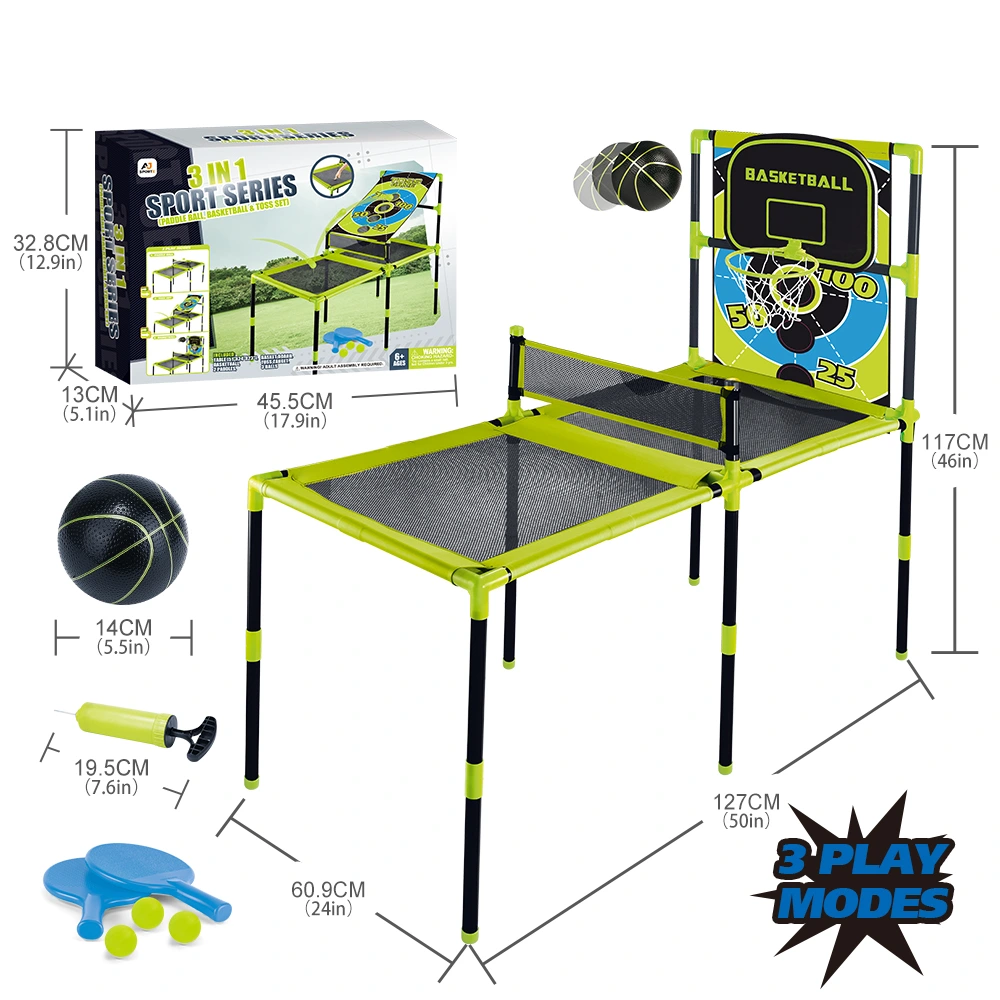 Aojie Sport – 3 In 1 Combo Set (Table Tennis, Toss Game & Basketball Set) - Ages 6+