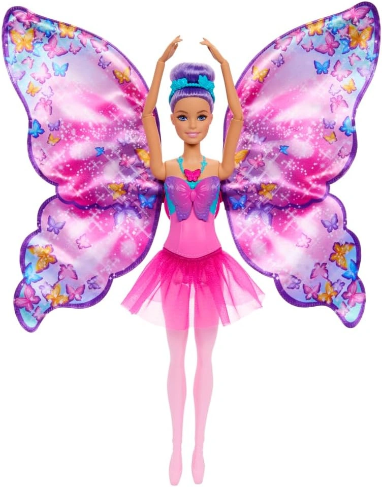 Barbie Dance and Flutter Doll with 2-in-1 Transformation from Dancer to Butterfly with Opening Wings, Purple Hair, Headpiece & Removable Tutu