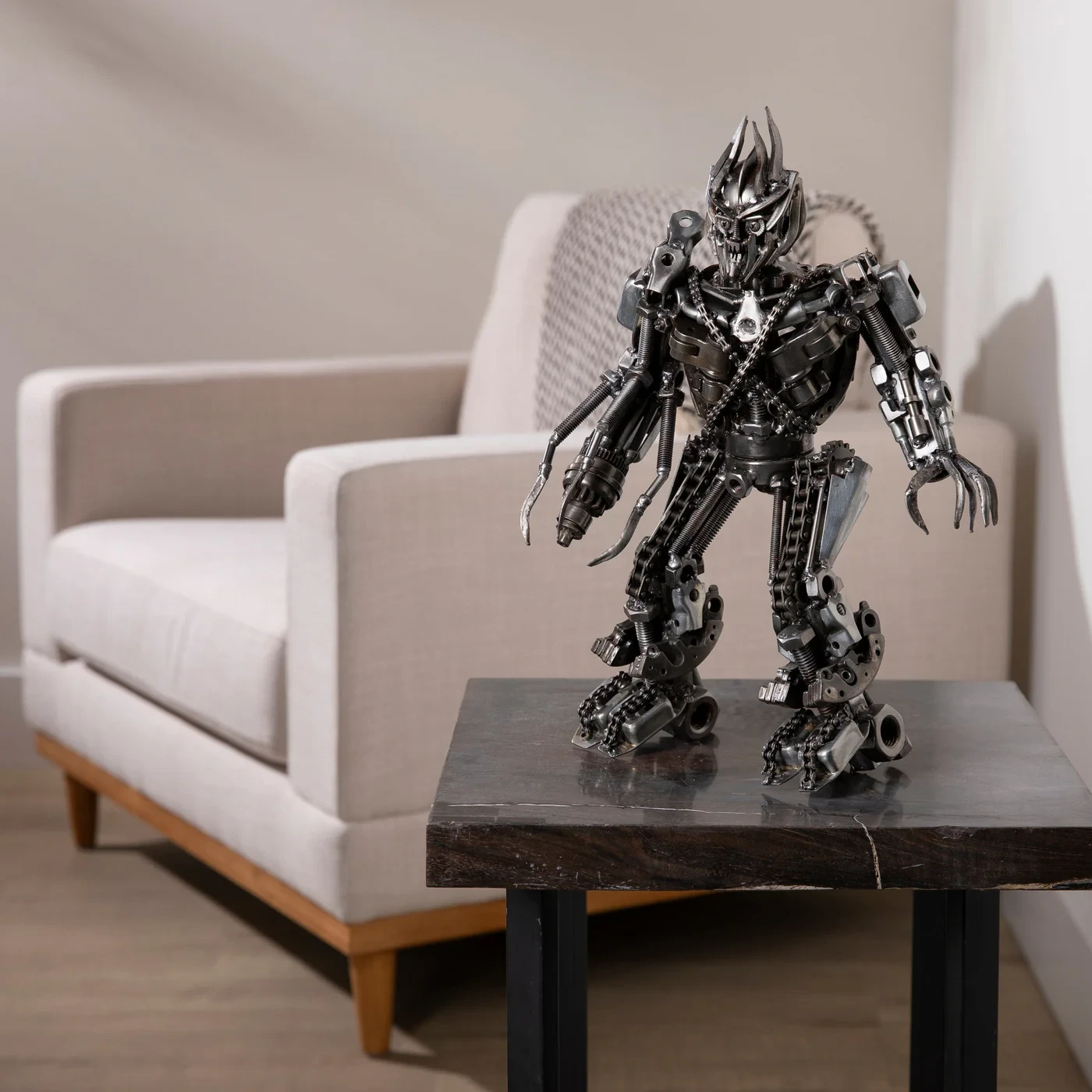 Inspired by the Transformer series, this piece is an incredible accessory for anyone who appreciates hand made art or to any fan of the film (or both). This sculpture is perfect for your home, office, garage, movie theater, and serves as a great gift.