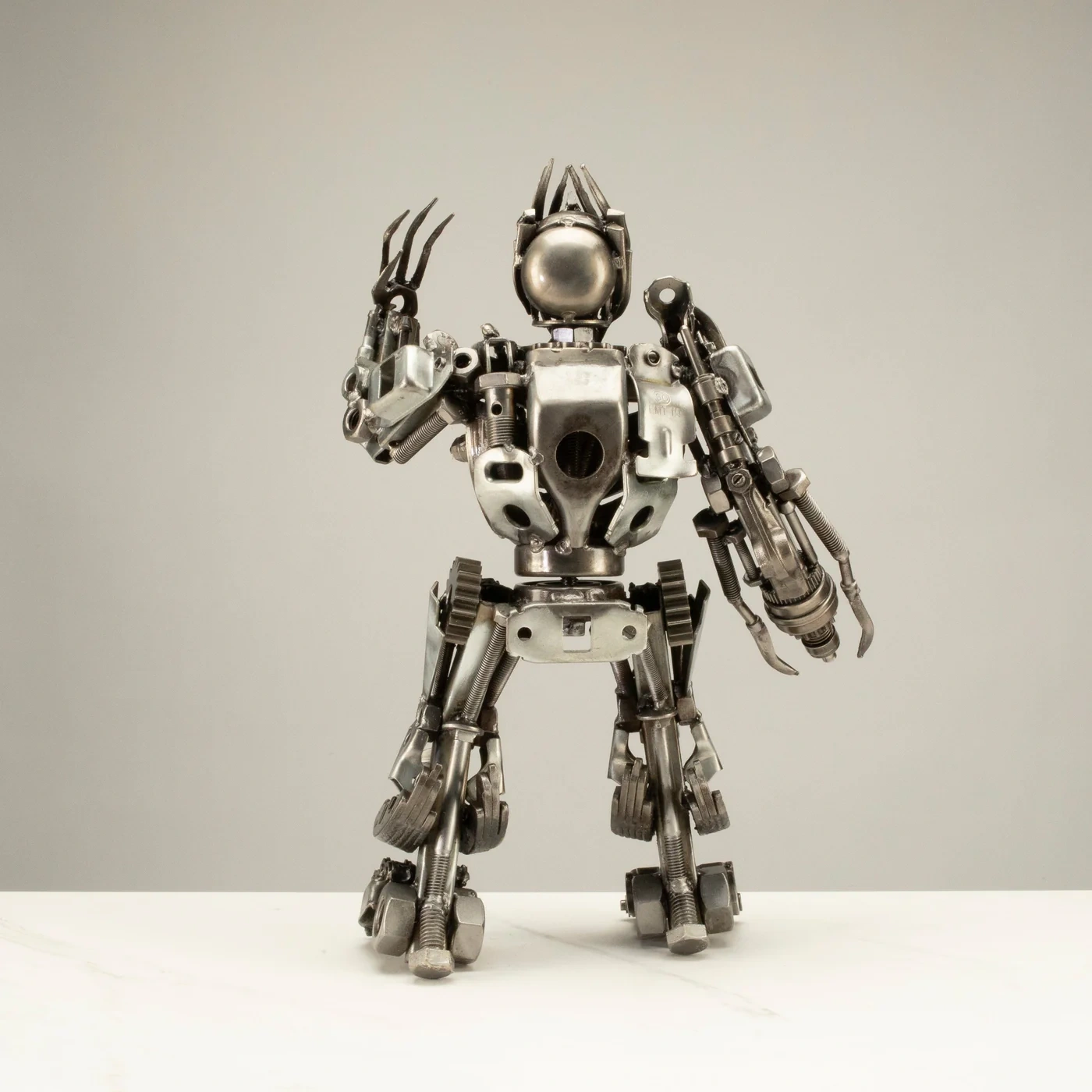 This is an original, hand-made KALIFANO exclusive work of art. This recycled metal art sculpture is handcrafted and welded from over dozens of recycled car, motorcycle, and moped parts that are fused together by master welders.